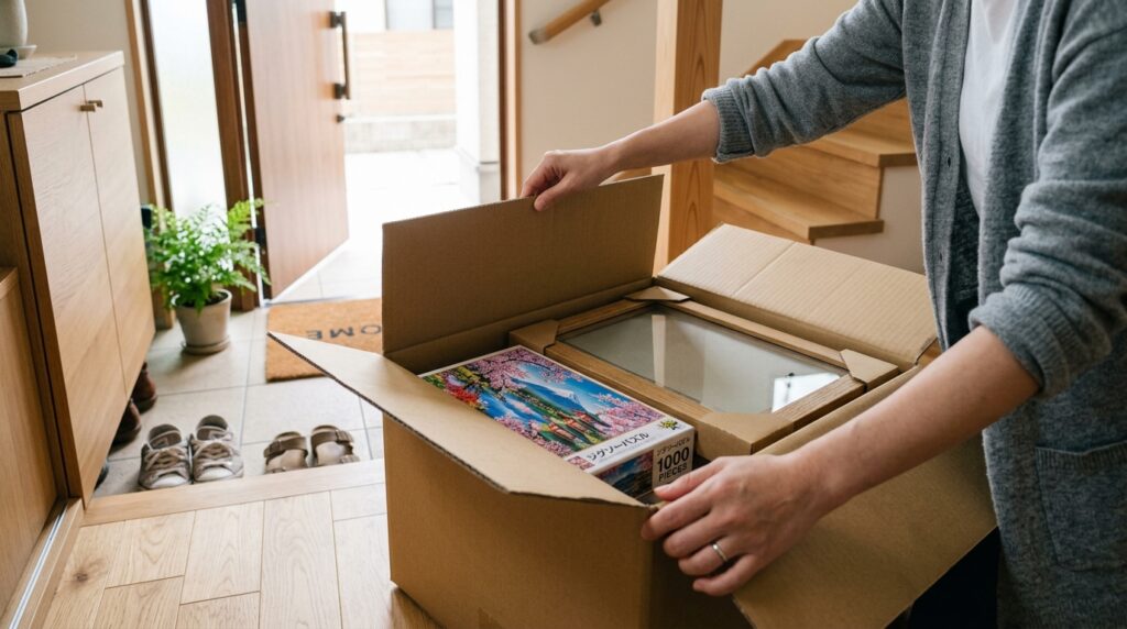 さて、ここまで数多くの実店舗をご紹介してきましたが、正直なところ「お店を何軒も回ったけど、一番欲しかったあの絵柄だけがない……」という経験をされる方も多いはずです。また、大型パズルとフレームをセットで買うと、かなりの重量とサイズになります。車がない方や、忙しくて店舗に行けない方にとって、私の最終的な結論は「通販サイトを賢く使い倒すこと」です。通販こそが、現代のパズル探しにおける最強の武器なんですよ。